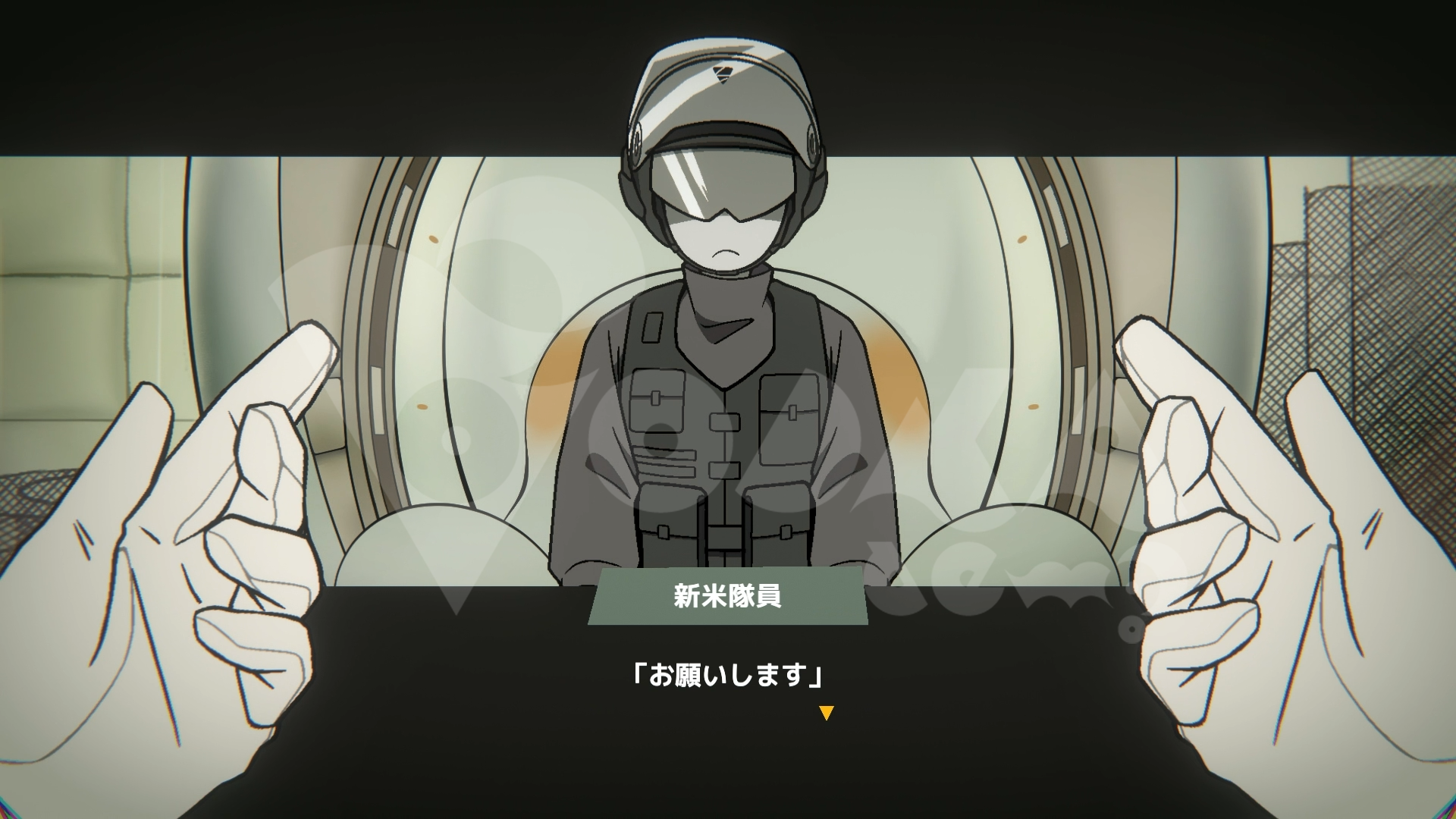 いつものデバッグルームに現れたのは……新米隊員。普段の様子とは違って、明らかに覇気がありません。