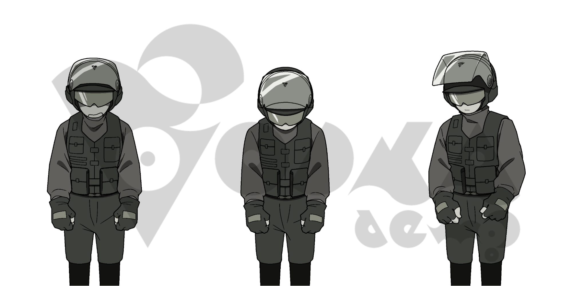 内部的な話をしてしまうと、第六章のために描き下ろされた新米隊員の立ち絵はそれまでの2倍以上! 基本的に今回の新米くんは落ち込みっぱなしなので、極端なことをいえば立ち絵は1枚でも済むのですが……彼の複雑な内面を微妙な差の立ち絵で表現したい! ということで、少しずつ異なる表情を見せる新規イラストを用意しました。今回の記事では、そんな立ち絵の一部を一挙ご紹介!